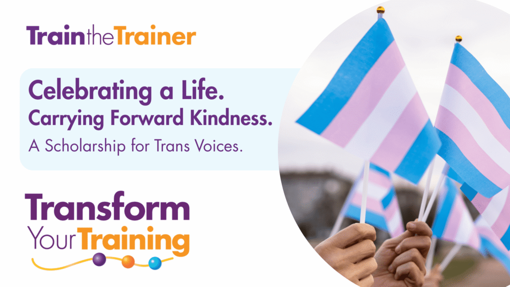 We also offer a dedicated scholarship for people within the trans community, in memory of a much-loved facilitator who embodied our values and commitment to inclusive, compassionate training. You can find out more about this scholarship here.